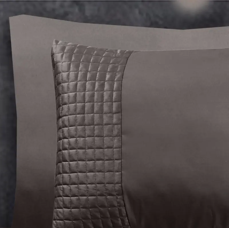 De bovenzijde van de kussensloop is gemaakt van 100% microfiber en is afgewerkt met een brede velvet band van 200 gsm. Deze band is carré gestikt in kleine, luxe blokken, wat een verfijnde uitstraling geeft. De onderzijde bestaat uit 100% microfiber van 90 gsm, waardoor de kussensloop zacht en comfortabel aanvoelt tegen de huid.